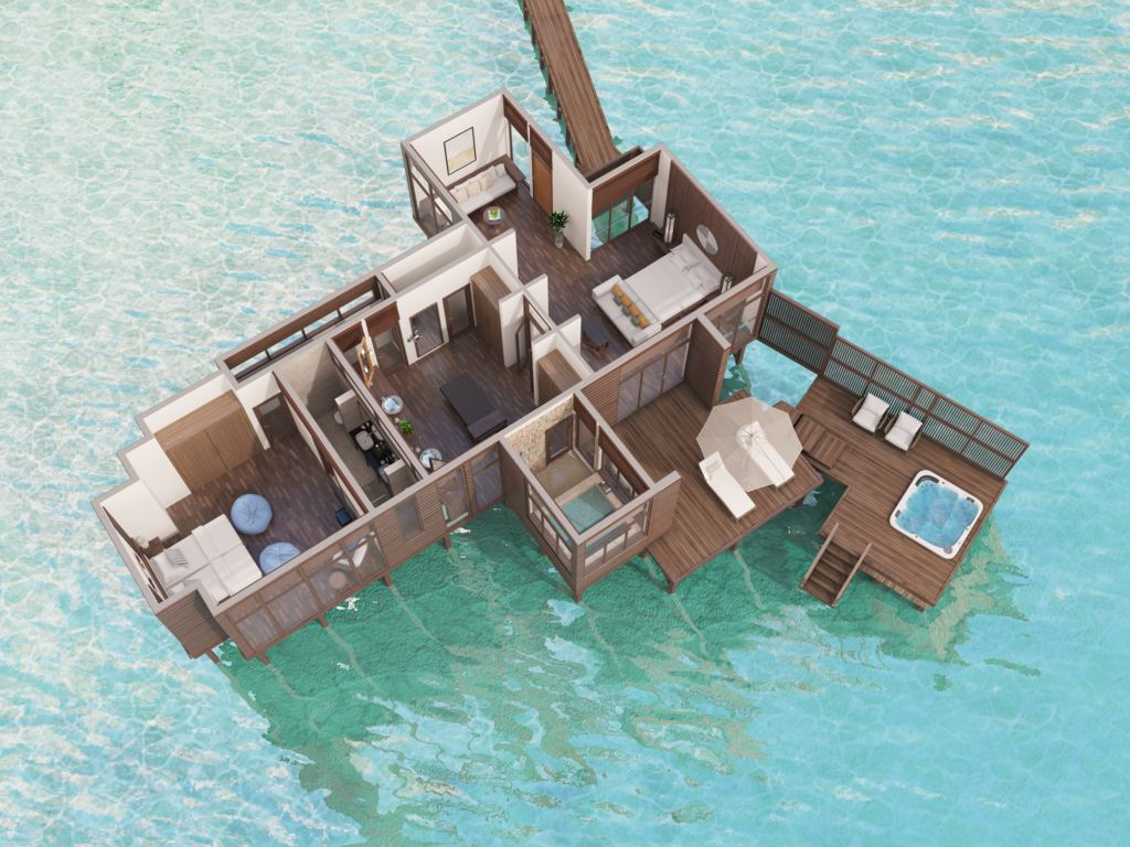 2晚沙灘別墅+2晚日落水上泳池別墅